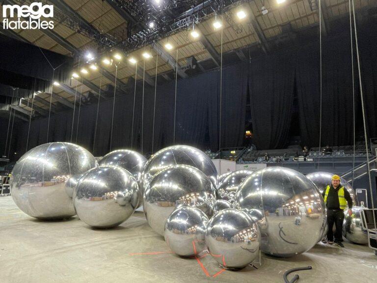 Our event management service includes everything from creative planning and logistics to on-site setup, supervision, and de-rigging. Our team will be present onsite to assist with installation and ensure everything runs smoothly throughout your event. Whether you’re working with a tight deadline or a complex venue setup, we have the knowledge and experience to ensure your inflatable chrome spheres are installed safely, securely, and in exactly the right position for maximum visual impact. We can even coordinate lighting to enhance the reflective effects of your spheres, creating a show-stopping feature that elevates your entire event.