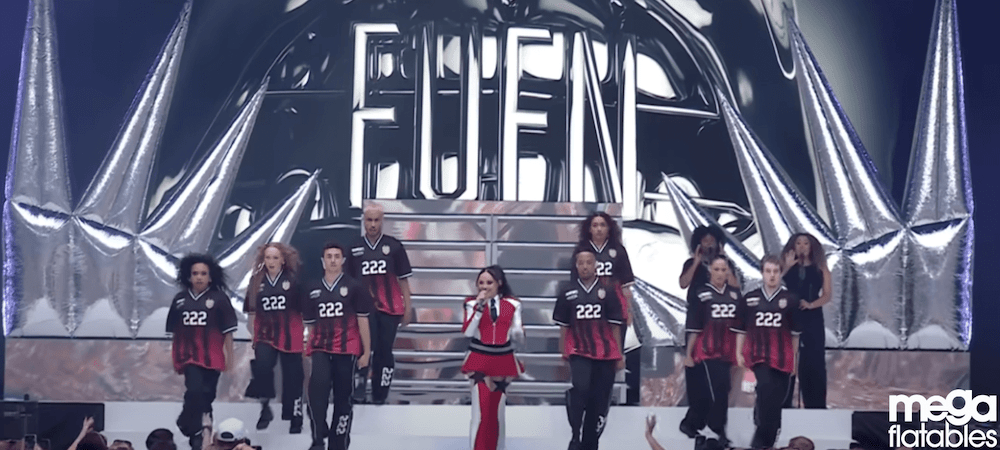 Another crucial consideration was stage safety. The custom inflatable spikes had to look razor-sharp while being completely safe for Jade, her dancers, and the production crew working around them. The team designed the structures using reinforced seams and secure anchoring systems, ensuring total stability throughout the performance. Despite their size and impact, the inflatables remained lightweight, making setup and teardown seamless within the event’s tight schedule.